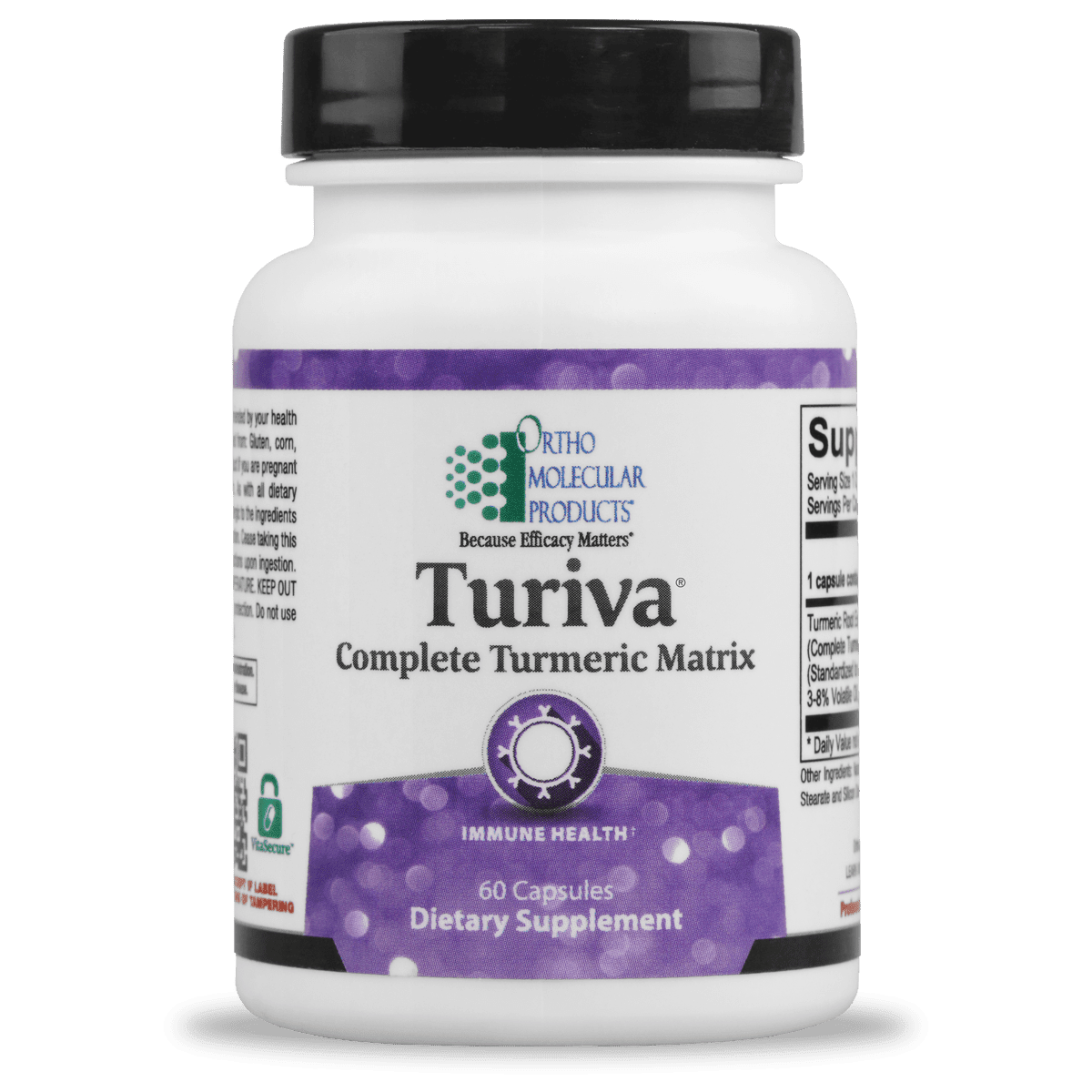 Turiva contains an exclusive blend of bioactive phytonutrients that make up the Complete Turmeric Matrix for increased clinical efficacy. It is a natural complex that includes curcumin, turmerin protein, turmerone oil, β-elemene, curdione, bisacurone and calebin A, making it a comprehensive, immune boosting turmeric supplement.